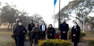 IZAMIENTO DE LA BANDERA: Con participación limitada se realizó esta ceremonia...