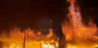 Impresionante incendio de un comercio en Goya